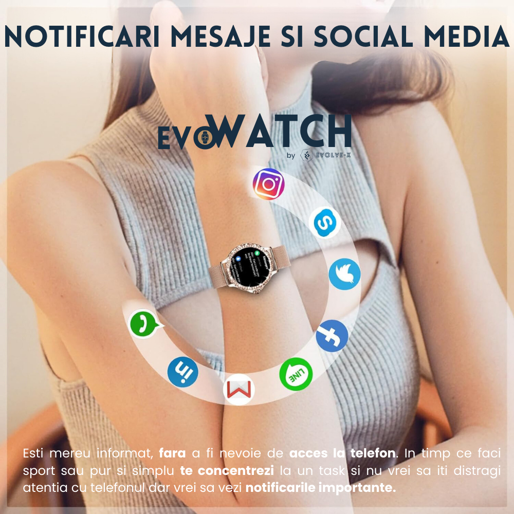 Descopera smartwatch-ul Evolve-x® EvoWatch9, un accesoriu elegant si util.