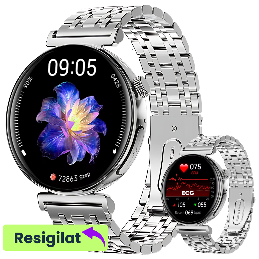 RESIGILAT: Ceas smartwatch dama Evolve-x® EvoPulse PRO, EKG, Apeluri si mesaje bluetooth, Monitorizare Sanatate